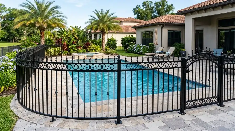Decorative aluminum fencing maintains visibility while still establishing clear boundaries. It has a see-through design that lets parents monitor pool activity from inside the house.